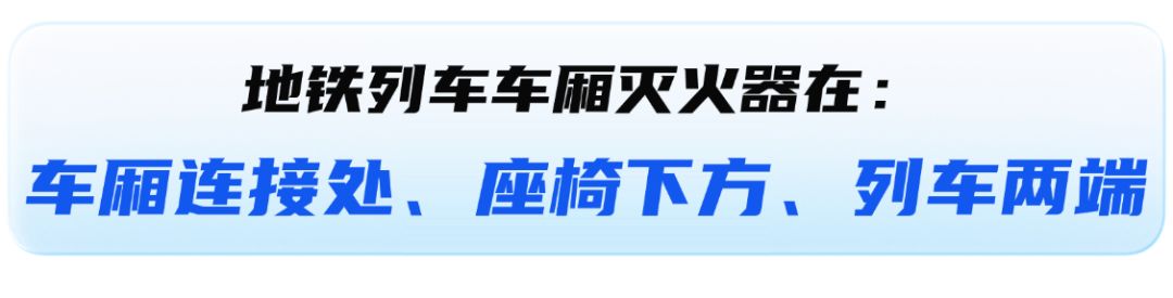 地铁车厢座椅下方及车门一侧均配备灭火器,可在紧急情况下取用。