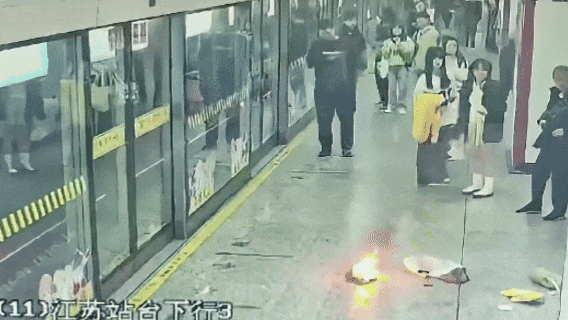 2026年4月18日早上,上海地铁11号线江苏路站下行站台,一乘客随身包袋突然自燃起火。监控显示,包袋突然冒烟后,该乘客迅速倒出袋中物品,确认系其携带的充电宝自燃。
